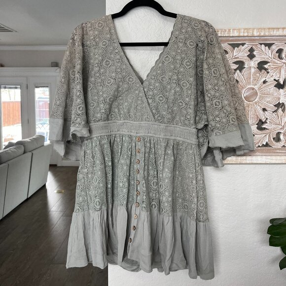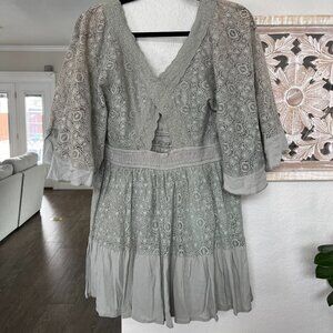 MABLE from Anthropologie Boho Sage Lace Romper Medium NWT