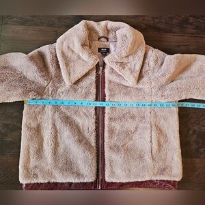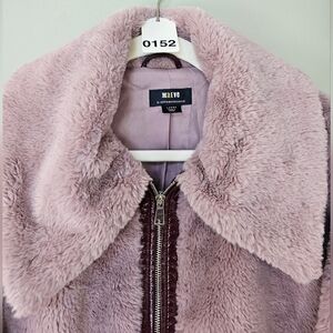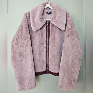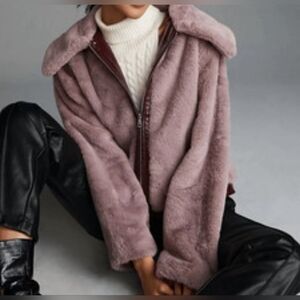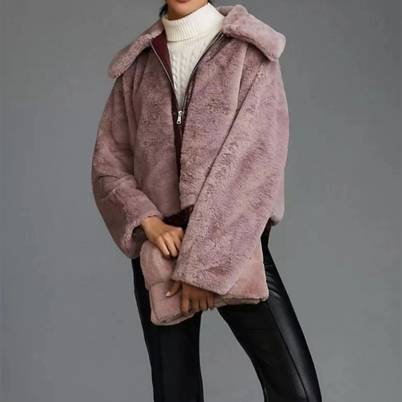 Maeve x Anthropologie Faux Fur Jacket Patent Trim Mauve Women’s Size Large, NWOT!