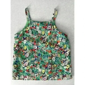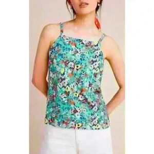 Maeve x Anthropologie Sz 0 Quinn Tank Top Green Floral Summer Boho Trendy Cute