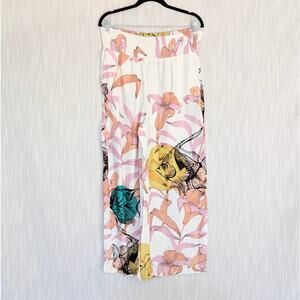 Maeve x Paul Rousso Fish/Floral Print High-rise Wide Leg Palazzo Pants, size M