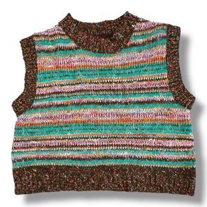 Maeve Anthropologie Flecked Metallic Striped Sweater Vest One Size