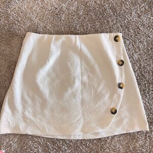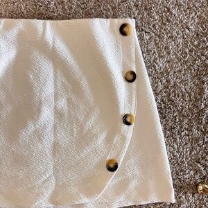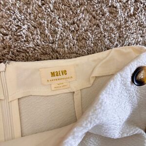 Maeve Anthropologie Medium White Textured Knit Tortoise Asymmetric Button Skirt