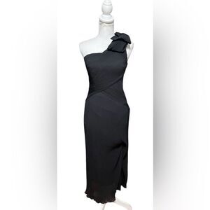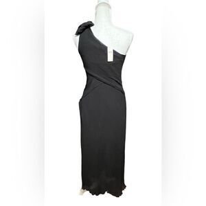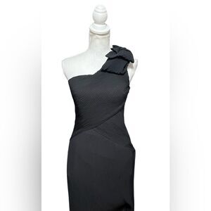 Maeve Anthropologie Pleated Crepe One Shoulder Bow Maxi Dress Black Size 2 NWT