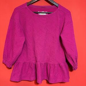 Maeve Women's XS Pink Textured‎ Peplum Blouse Long Sleeve