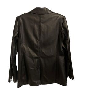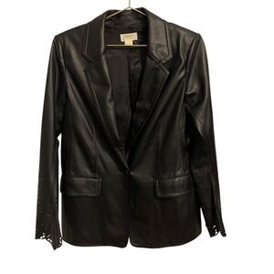 Maeve by Anthropologie Black Faux Leather Laser Cutout Bell Sleeve Blazer Size 8