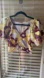 Maeve by Anthropologie Yellow,Gold,Lavender,Purple & White Flutter Sleeve Ruched Front V-Neck Crop Top. Size S