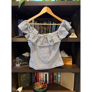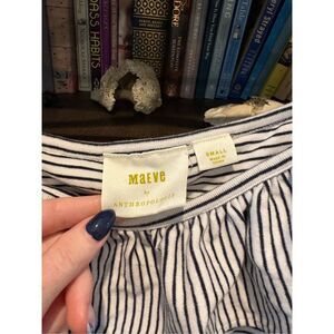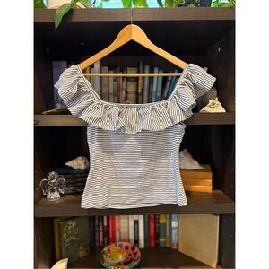 Maeve x Anthropologie Black & White Stripe Ruffle Neckline Blouse Size Small