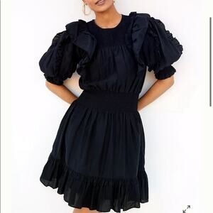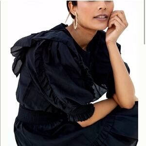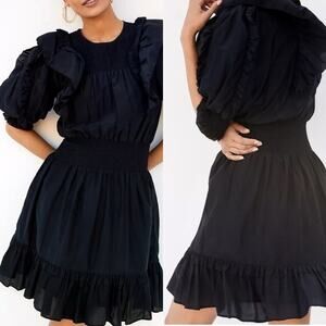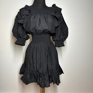 Magali Pascal Anthropologie Silk Blend Petal Puff Sleeve Black Dress Size S