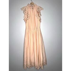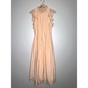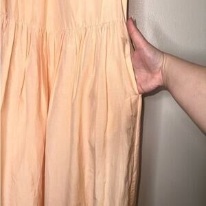Magali Pascal Corinne Silk Blend Midi Dress Peach/Orange Ruffle Sleeve Small