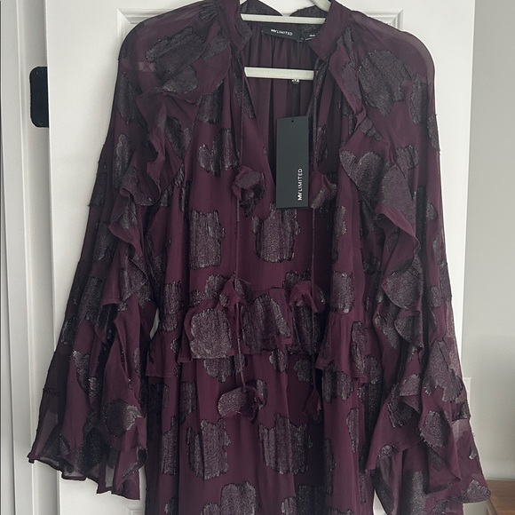 Elegant purple dress with ruffle details. Perfect for special occasions.