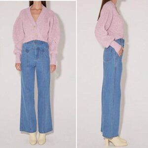 Magali Pascal Sienna Cropped Rib Knit Cardigan Anthropologie Chunky cozy pastel size XS