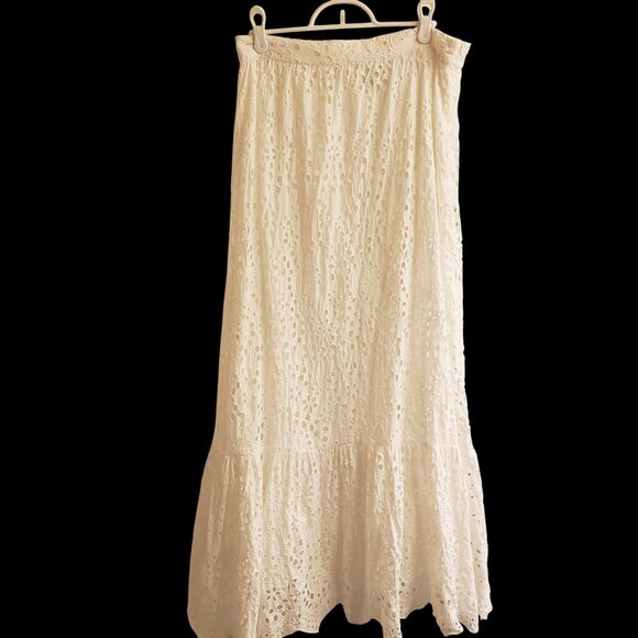 Magali Pascal Skirt Women's Large White Cotton Eyelet Maxi Boho Coastal