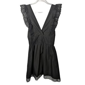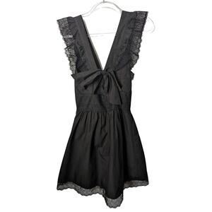 Magali Pascal Vivienne Black Mini Dress Eyelet Lace Detail Backless with Tie S