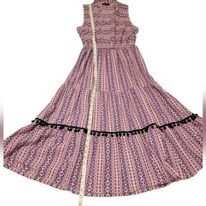 Magari Italy Fit Flare Skirt Sleeveless Dress Women's Small Pom Pom Geo Print