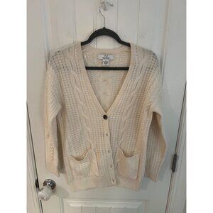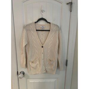 Magaschoni 100% Cashmere Cable Knit Cardigan Sweater Cream Size XS