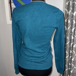 Gorgeous Deep Teal 100% Cashmere Magaschoni Sweater. Size small. In excellent pre loved condition. Measures 17” across the chest, 25” long & has 24” long sleeves: