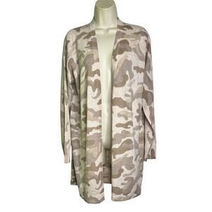 Magaschoni 100% Cashmete Open Front Long Cardigan in Tan Camo NWT Size Large