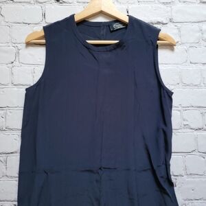 Magaschoni 100% Silk Navy Blue Sleeveless Zipper Accent Dress Size ?