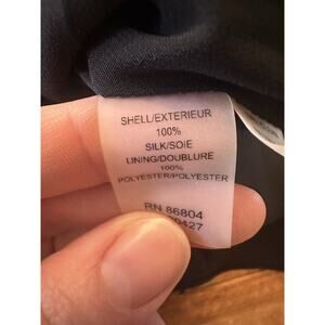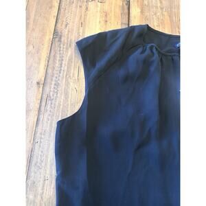This is a classic and sophisticated Magaschoni shift dress for women in size 14. Made from 100% silk, the knee-length dress comes in a solid black color with a sleeveless design and a zipper closure for easy wear. The dress features a zipper accent and exudes a timeless style, perfect for various occasions.