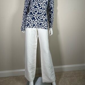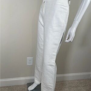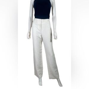 Magaschoni $298 Winter White Cotton Linen Wide Leg Trousers Pants Womens Sz 10