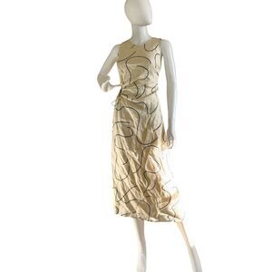 Magaschoni linen cut out size waist midi dress, perfect summer dress or fall dress, no imperfections NWT 🌷🐚 super botega vibes