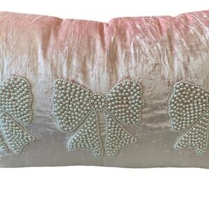 Magaschoni Beaded Faux Pearl Bows on Pink Velvet Decorative Pillow 14x20 New