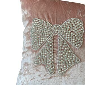 Magaschoni Beaded Faux Pearl Bows on Pink Velvet Decorative Pillow 14x20