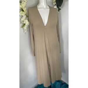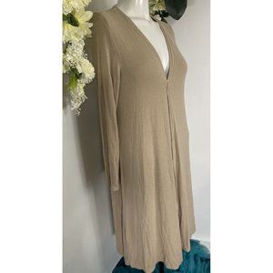 Magaschoni Beige Small Ribbed Long Sleeve Open Front Cardigan Sweater Vintage