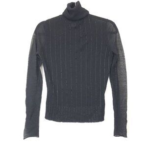 Magaschoni Black Ribbed Turtleneck Sweater Beaded Stripes Semi-Sheer Size S