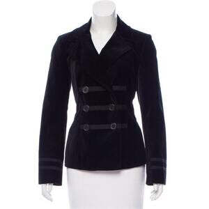 Magaschoni Black Velvet Double-Breasted Blazer Notched Lapel, Grosgrain Trim, Three-button Detailing Size: M | 8