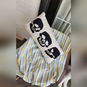 Magaschoni Black White Halloween long Pillow 3 Skulls NWT Retail $72.00 Each