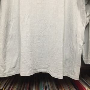 Pale bluish grey 3/4 sleeve top by Magaschoni, size petite large. Round neck, lightweight silk/spandex blend with a slight almost stripe slub texture. Light wear with no flaws or stains noted. Laying flat measures approximately 19" pit to pit ans 22" shoulder to hem.
