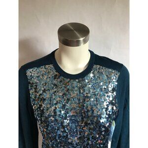 Magaschoni Blue Thin Knit Sweater W/ Full Sequin Panel in Front, Size Medium