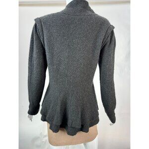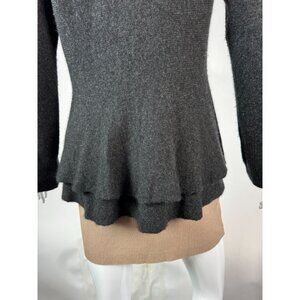 Magaschoni Cashmere Button Front Cardigan With Peplum Hem & Puff Sleeves - Gray