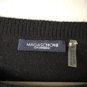 Stunning black cashmere sweater with lace sleeves by luxury label Magaschoni.