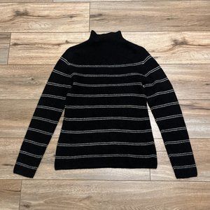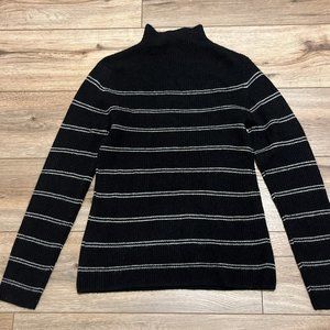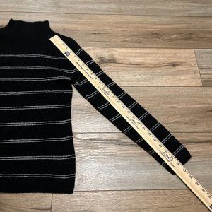 Magaschoni Cashmere Sweater SZ Medium Rib Knit Black White Stripe Mock Neck
