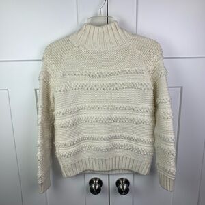 Magaschoni Chunky Textured Pullover Knit Sweater SMALL Cream Mock Neck.