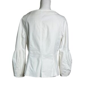 Magaschoni Collection White Zip Front Puff Sleeve Jacket