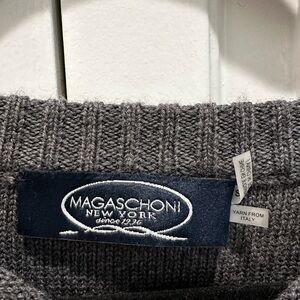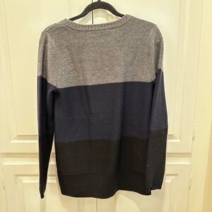 NWOT Magaschoni black, grey, and blue wool tunic sweater.