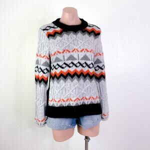 Magaschoni Geometric Crewneck Knit Pullover Nordic Grandpa Sweater Gray XS NWT