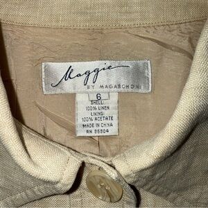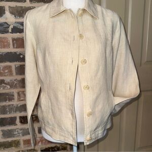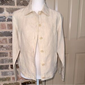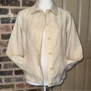 Magaschoni Linen Cropped Button-Front Jacket Shirt Pale Cream Yellow Lined Sz 6