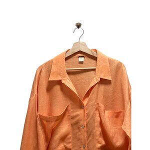 Magaschoni Linen Oversized Button Down Blouse Orange Size L Beach Lagenlook Boho