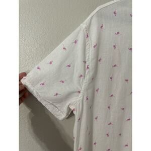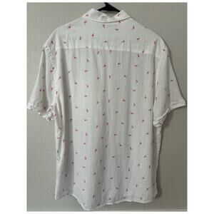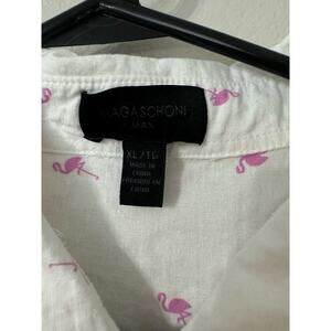 Magaschoni Man Linen Blend Flamingo Short Sleeve Button Down Shirt Size XL