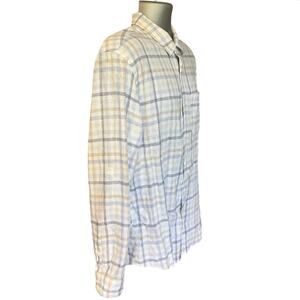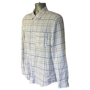Magaschoni Man Neutral Check Linen Blend Casual Button Down Size M