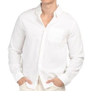 Magaschoni Man White linen blend button down with pocket size xl