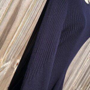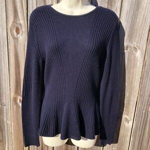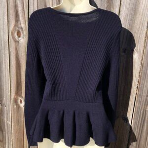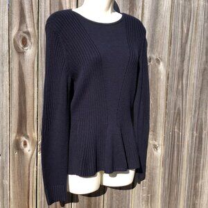 Magaschoni Medium Wool Sweater Pullover Top Peplum Navy Blue Ribbed Long Sleeve