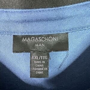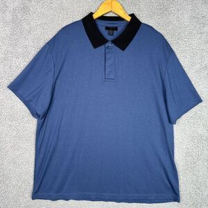 Magaschoni Men’s XXL Blue Black Contrast Collar Polo Shirt Golf Casual