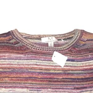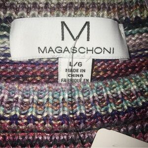 Magaschoni Multi Color Striped Knit Pull Over Short Sleeve Woman’s Sweater L