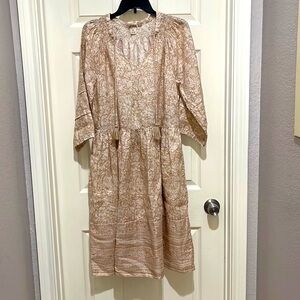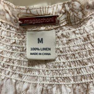 Magaschoni Neutral Ink Floral Print Beige Drop Waist Dress Size Medium