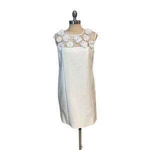 Magaschoni New York Floral Appliqué Dress Sleeveless White Medium